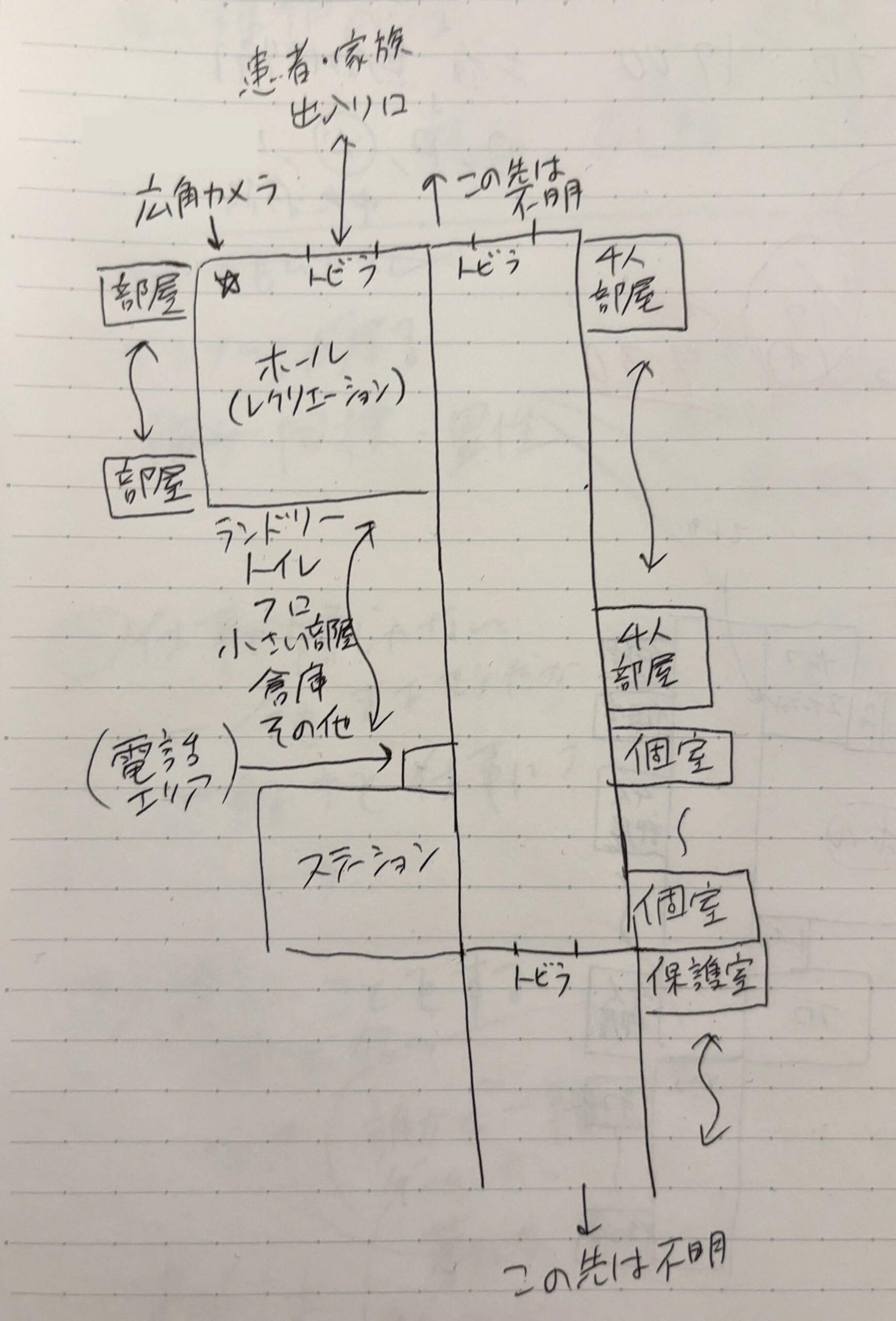 ・「これ絶対元々倉庫だっただろ」という場所・ドアな個室(保護室ではない)