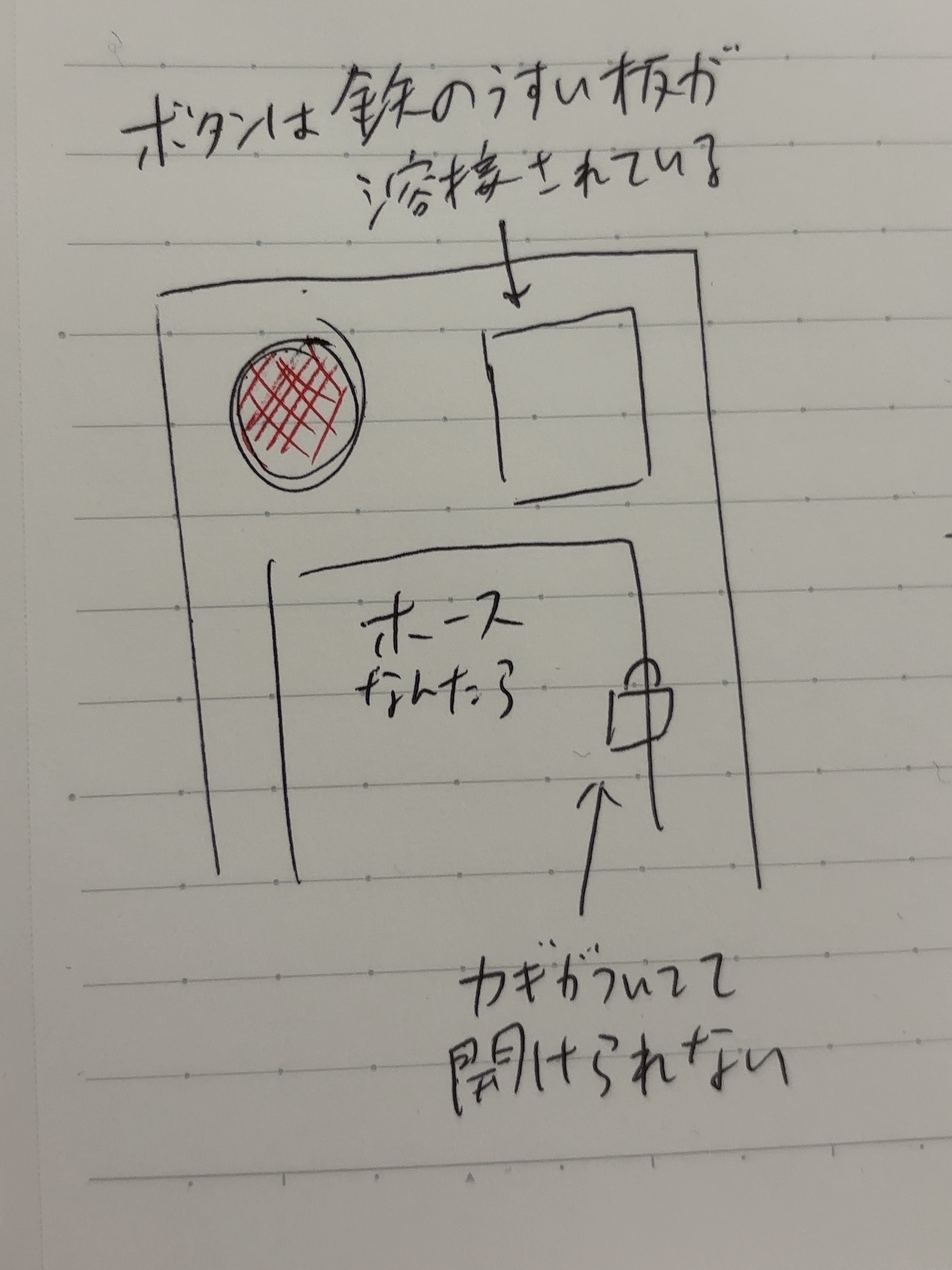 消防設備はありますが、なんと火災報知器のボタンが塞がれてて使えません。