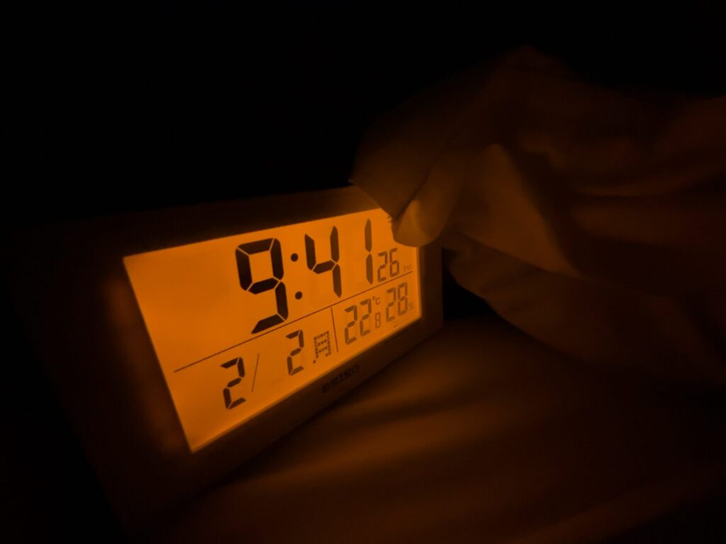 消灯が早すぎて眠れず、気がついたら40分も50分も平気で経過しているの図です。